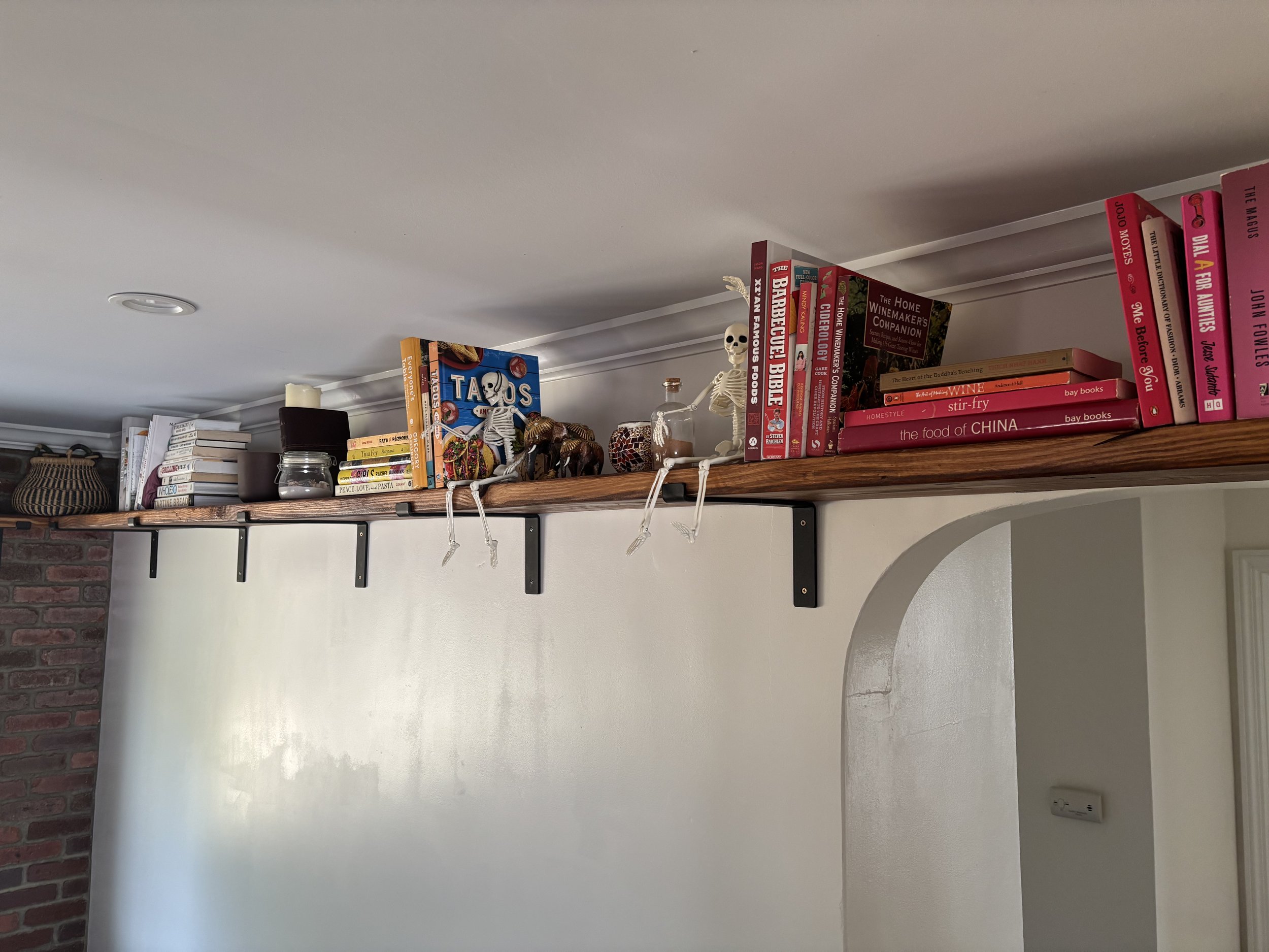 Enhance your space with custom shelves crafted to seamlessly blend with your decor. This client envisioned stained hardwood paired with black iron brackets—perfectly coordinating as part of a matching set for their breakfast nook.
