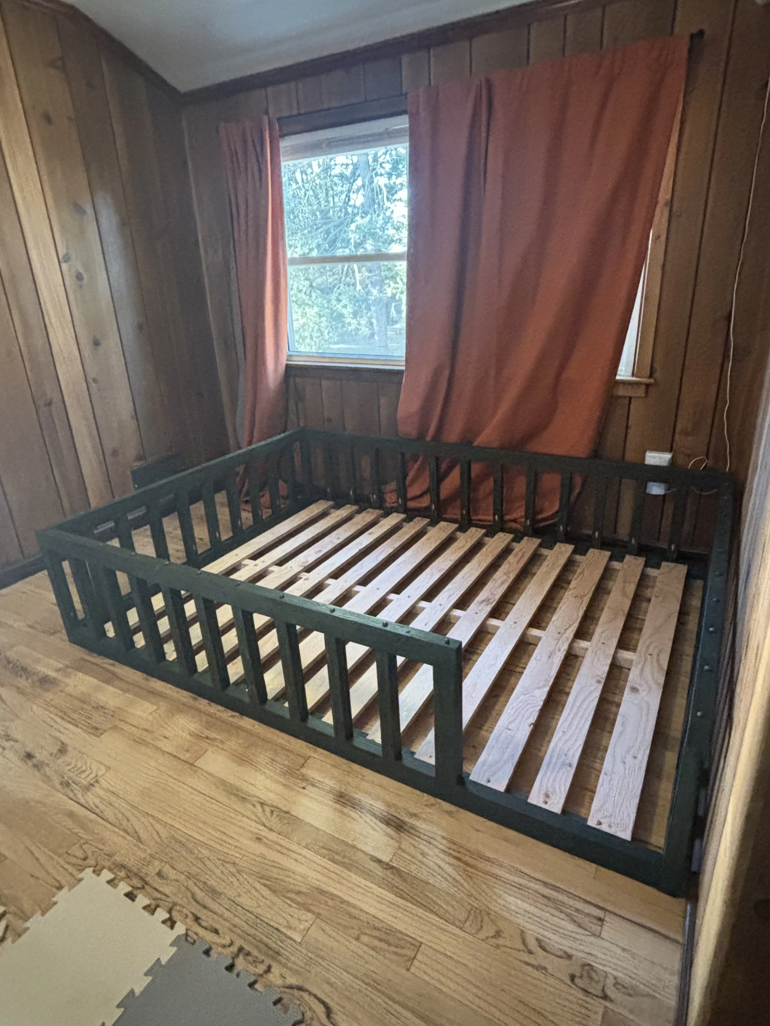 This Montessori toddler bed is built low to the ground, so your little one can climb in and out on their own—encouraging confidence and independence. Simple, safe, and cozy, it creates a welcoming space for restful nights and big kid adventures.